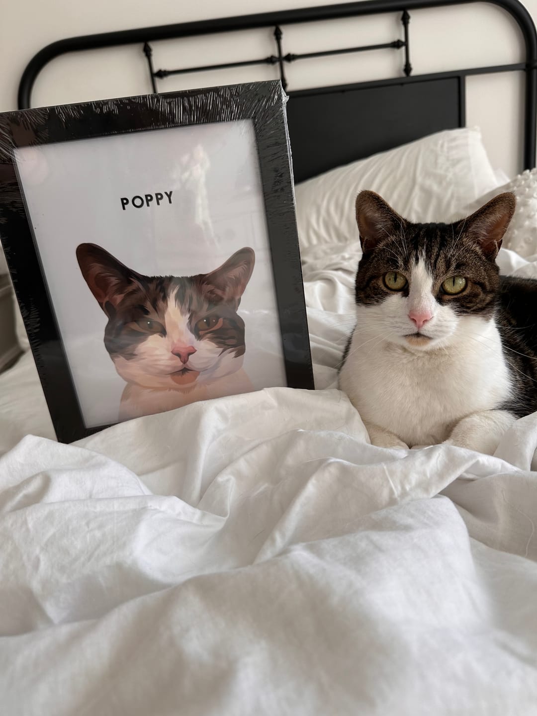 Elige el tamaño, marco y fondo que prefieras, y sube la foto de tu lomito o michi. ¡Después solo haz tu pedido!